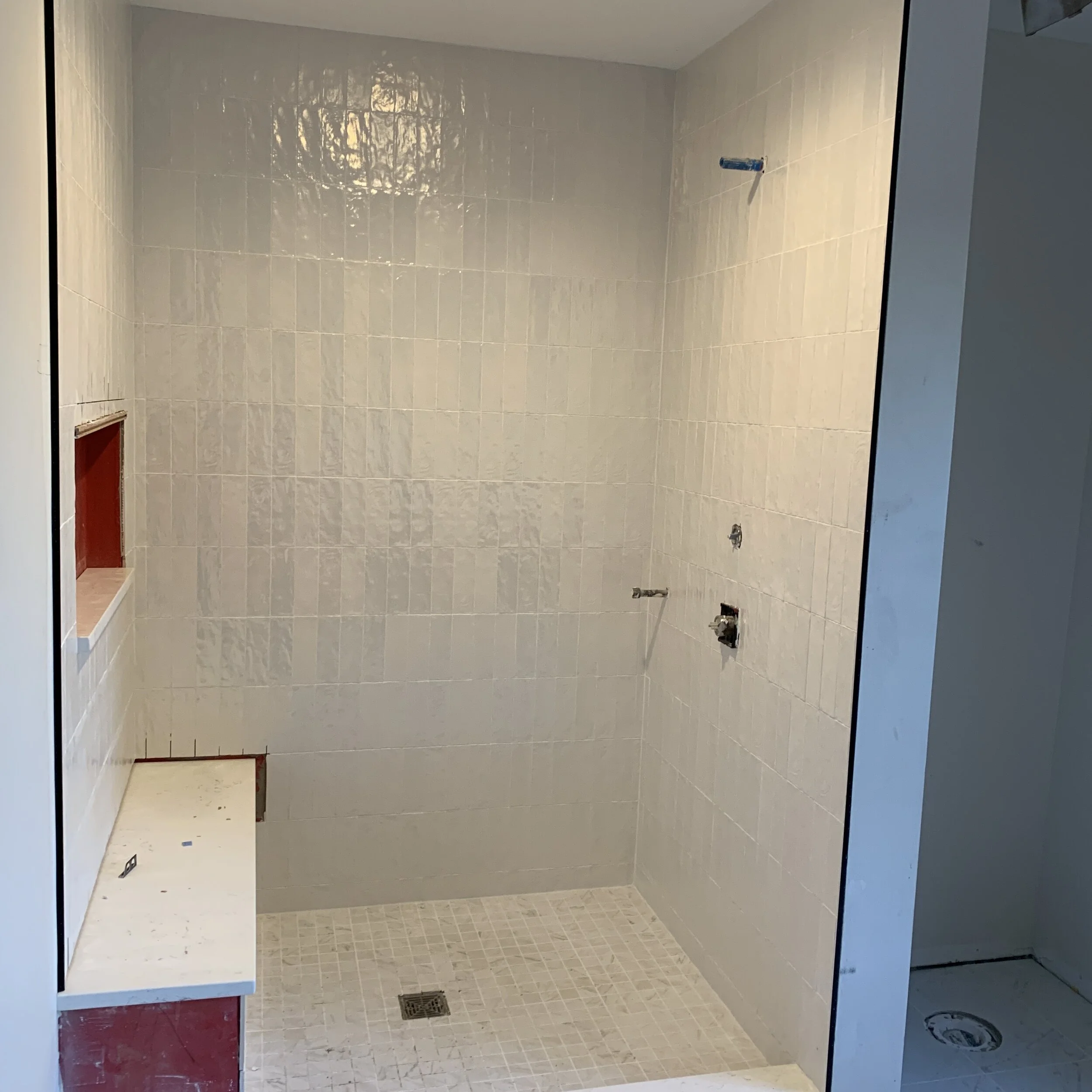 Master suite with en suite bath (dual vanity, glass-enclosed shower, luxury tile) and walk-in closest